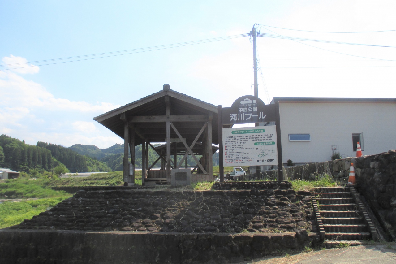 竹田ダムは、県道8号線が大野川を渡る魚住橋から200mくらい上流にありました。1955年(昭和30年)に完成した、九州電力の発電用のダムです。国際的には高さが15m以上あるものをハイダム、満たないものをローダムと定めています。そして、日本の河川法では、ダムとはハイダムのことで、ローダムは堰と分類されています。この竹田ダムは高さ4.15mの本堰の上に可動式の取水用ゲートが設置され、合計しても10.2mとのことなので、正式には竹田調整池堰と呼ぶそうです。