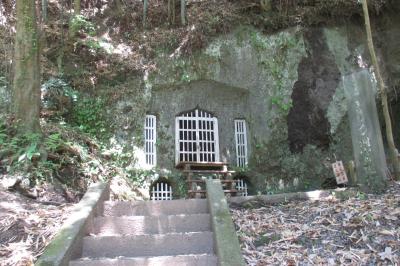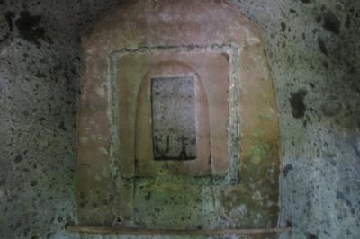 キリシタン洞窟礼拝堂は、殿町の武家屋敷通りから、右に赤松谷に入って行ったところにありました。中はおよそ3m四方、高さは約3,5mあるとのことです。もともと洞窟があり、この大きさに掘り込んだのでしょうか。正面に祭壇の様な跡がありました。海外でも何回か洞窟礼拝堂を見たことがありますが、それらは、単に、礼拝堂を洞窟に造ったものでした。でも、ここは表に出せないので洞窟に隠したということでしょうね。もっとも、武家屋敷のこんな近くにあることには、何か隠された事情があるのでしょうね。