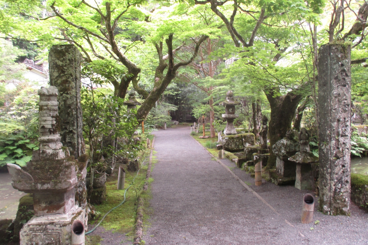 宝生寺は、奥嶽川の中流域の、清川町の宇田枝地区にありました。駐車場から進んだところに、ヒシでしょうか水草に埋まった大きな池が拡がっていました。周囲はもみじの木に埋まっていて、ここは紅葉の名所だということが分りました。久安年間(1145年~1151年)に、鎮西八郎源為朝によって建立したと伝わっているそうで、本堂にある十一面観音坐像は「為朝公背負の仏」と呼ばれるのだそうです。衰退しますが、1450年(宝徳2年)に、大友氏第14代当主の大友親隆が再建し、江戸時代には、岡藩の藩主の庇護があり、隆盛したとのことです。お経?の刻まれた石柱の周辺にはたくさんの苔の生えた石塔が置かれていました。南北朝時代以前の年代の銘も見られるとのことです。なお、山号はなく、臨済宗妙心寺派のお寺さんです。
