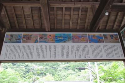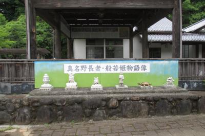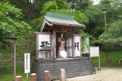 内山公園は蓮城寺に隣接したところにありました。この公園は春は桜、秋は紅葉の名所だそうです。ここは真名野長者の伝説の中心地です。公園の端には長者の里陶芸窯ありましたが、その前の休憩所には、真名野長者と般若姫の長~い絵物語が掲示してありました。般若姫は都に上る途中で亡くなった説と都で妃として幸せに暮らした説がありますが、ここの絵物語では亡くなった説の方でした。そして、臼杵石仏へと話が繋がっていました。また、休憩所の前に、登場人物などの像が置かれていましたが、素人の手作り感があって、ちょっと笑ってしまいました。