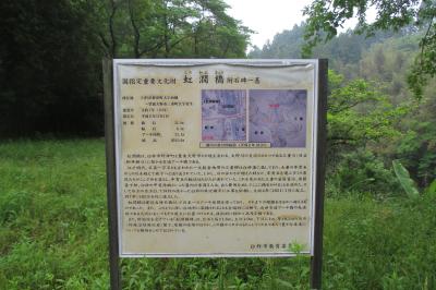 虹澗橋は国道502号線が三重川を渡る新虹澗橋の下流200mくらいのところにありました。右岸側が臼杵市野津町、左岸側が豊後大野市三重町となる三重川に架かっている石橋です。現在は車の通行は出来ない様になっていましたが、橋の中心には中央線が残っていて、近年まで現役だったことが偲ばれました。1821年(文政4年)に起工し、1824年(文政7年)に竣工した単アーチ橋で、橋長は31m、幅員は6.1m、ほぼ半円形のアーチ径間は25.1mあり、架橋時、石橋の径間長として日本一だったとのことです。