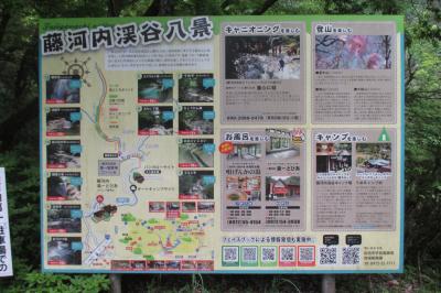 藤河内渓谷はまったく予定をしていませんでしたが、国道326号線の県境のところにあった「藤河内渓谷9km」の案内板を見て、9kmくらいならそれ程遠くないと思って訪れることにしました。案内板には「藤河内湯~とぴあ6km」とも書かれていて、帰りには寄れるとも思いました。