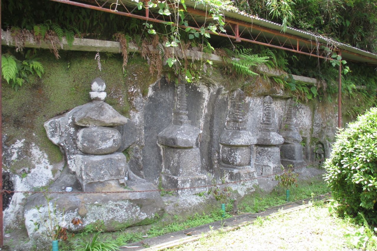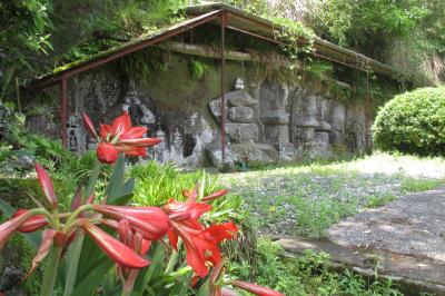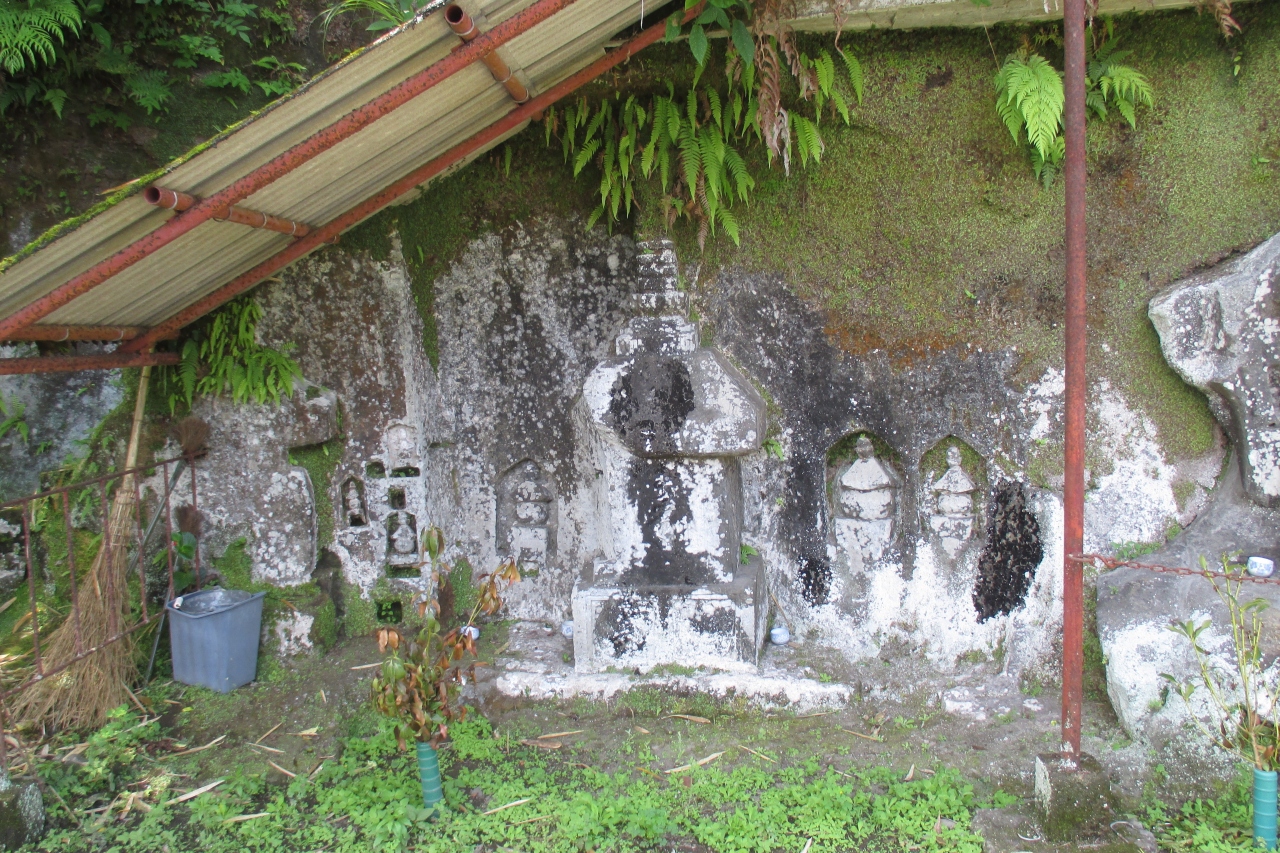 小倉磨崖石塔は、弥生の上小倉というところで、民家の裏庭といった感じのところにありました。五輪塔が34基、宝塔が8基が彫られていました。中程に植物があるので全体を一度には見にくくなっていました。鎌倉時代終わり頃から南北朝時代の作とみられるそうです。制作年が分るのは1326年(嘉暦元年)が1基、1329年(嘉暦4年)が2基、1345年(康永4年)の1基だけとのことです。なお、近くに駐車場はありませんが、100m強離れたところの、佐伯市弥生振興局の広い駐車場を利用して良いそうです。