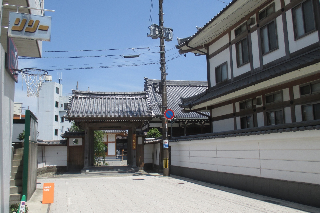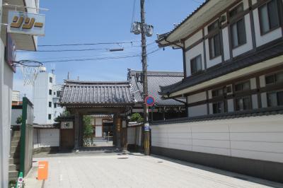潮谷寺は、人影のない仲町銀天街の長いアーケード街を西に抜け、信号を渡った先にありました。カギ型に曲がった道路に山門が設けられていますから、狭いとの印象を受けます。近隣の大日寺もまったく同じ様子ですから、町割りの時から何か目的を持っていたのでしょうね。