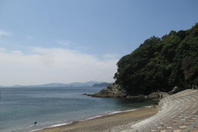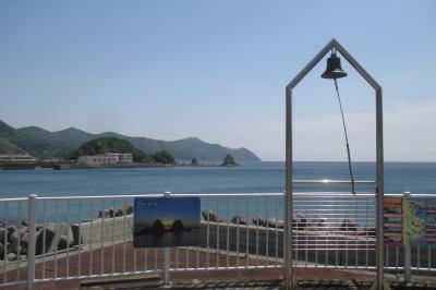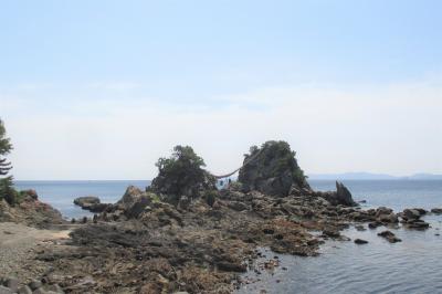 豊後二見ヶ浦は、佐伯市上浦の浅海井浦(あざむいうら)というところにありました。ここは全国でも屈指の初日の出の名所だとのことです。12月24日から1月 4日まではライトアップもなされるそうです。男岩の高さは17m、女岩は10mもあるそうで、そこに渡されたしめ縄は巨大で、長さは65m、最大直径が75cm、重さは2トンもあるそうです。佐伯市立東雲中学校の前から近くまで行けますが、現在、遊歩道を造りたいと計画している様です。近くのマリノポリス記念公園からはほぼ真横からの景色が眺められました。