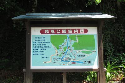 暁嵐(ぎょうらん)公園は、海沿いのマリノポリス記念公園とはJR日豊本線を挟んだ山側にありました。大分百景の1つである暁嵐の滝を中心に整備された公園とのことですが、誰がいつ整備したのかを書いたものが見つかりません。掲示によれば、日豊海岸国定公園に含まれるところで、主な見どころは、暁嵐の滝、瀧三柱神社、暁嵐石庭、日本庭園などとなっていましたが、全体として、まとまりのない公園で、良く言えば盛りだくさんともいえます。