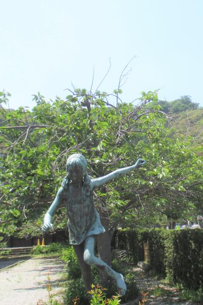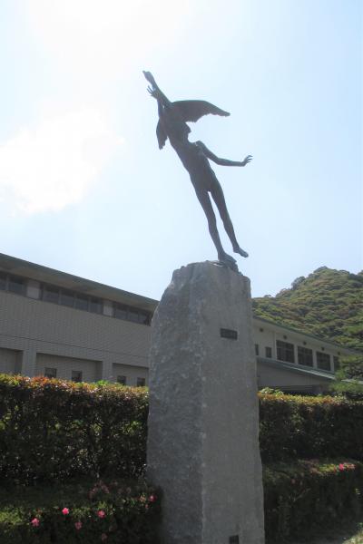 城山を眺めながら、城山の下にある(昨年閉館した)勤労者総合福祉センター・三余館の前に移動をすると、彫刻の作品が2つ置かれていました。ともに、大分出身の彫刻家・佐脇健一さんの作品です。1つは「スイング」で、おさげの少女が元気よく跳躍しています。もう1つは「鳥と少年」で、少年が鳥とともに飛び立っていく様です。佐脇健一さんの作品は大手前公園にもありますね。- 旅行時期