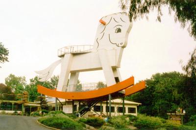ゴージ・ワイルドライフ・パークからドイツ村のハーンドルフに向かうためトレンス谷通り(Torrens Valley Rd)を走っていると、突然、大きな木馬がありました。ここはトイ・ファクトリーで、道路を走る車の注意を惹くために造られたとのことですが、正に、その目論み通りでした。1981年に造られたもので、高さは18mもあるとのことです。階段が付けられていて、背中の上まで上がることが出来ました。トイ・ファクトリーは、専門が木工玩具で、素朴で暖かみを感じる製品でした。直販の販売所でお土産に1つくらい買ってみるのも良いかも知れませんね。