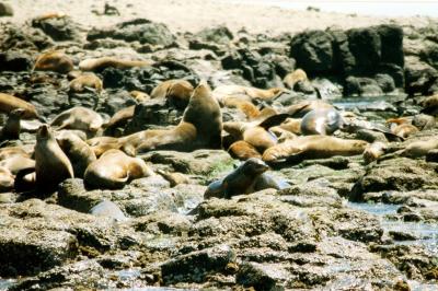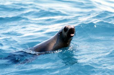 メルボルンで海に沈む夕日の眺めが素晴らしいとして有名な、フィリップ島の西端グランド岬の沖2kmにあるシールズ・ロックのアシカを見に行くクルーズです。このシールズ・ロックはオーストラリアで最大のアシカのコロニーだそうで、その数は約5、000頭といいます。このアシカはニュージーランド・ファー・シール (NewZealand Fur Seal)という種類だと思います。クルーズは2時間コースですが、島の中心カウズ(Cowes)のジェッティから片道30分ほど船旅でシールズ・ロック近くに着きます。日向ぼっこをしていたアシカも慣れたもので、船が来ると海に飛び込み、船の周りを泳ぎ回ってジャンプをしたりして遊びます。岩の上で惰眠を貪っているアシカも多いので、船も大きな波の中、岩礁ぎりぎりまで寄せ、アシカの様子が良く見える様にもしてくれます。相当な波の高さと大きなうねりがありますから、日本のクルーズでは絶対にこんなに近くまではいかないと思いますが・・・。