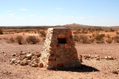 また、スチュアート・ハイウェイ上で、スチュアート関係の石碑がアリス・スプリングスの200kmくらい北にセントラル・スチュアート山歴史保存区と云うモニュメントがありました。ここは1860年に、スチュアートがこの地に達した時、この場所からほんの少し北西にある山が大陸のほぼ中心だとして、セントラル・スチュアート山(Central Mount Stuart)と名付けたことを記念したものです。- 旅行時期