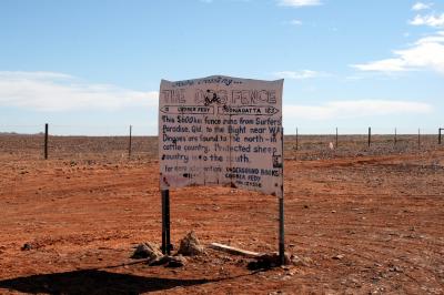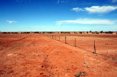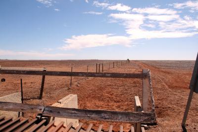 クーバー・ペディの町から、未舗装のウィリアム・クリーク道路(William Creek Rd)を北東方向に15kmほど進んだところでドッグ・フェンスが見られました。といっても、極々一部ですが・・・。何と、ドッグ・フェンスは世界で最も長い構築物で、全長は約5、300kmもあるそうです。高さは2mが基準だそうです。大陸東側の海岸線であるクィーンズランド州ゴールド・コーストから南オーストラリア州の南西部の海岸線にあるセドゥーナまでに築かれています。このフェンスは、大陸の中北部に生息するディンゴ(野生犬)から、大陸南部に開拓した羊牧場を守るために築かれたものです。なお、柵建築の始まりは19世紀後半で、有袋類から農場を守ることだったそうです。
