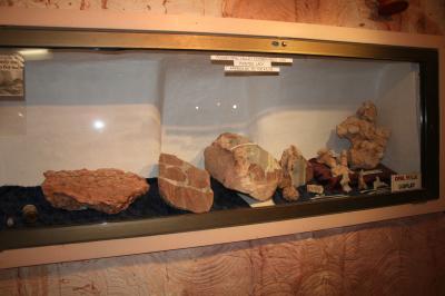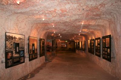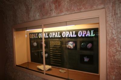ウムーナ・オパール鉱山・博物館はクーバー・ピディの町の中程にありました。元々は1920年代の鉱山だったところを利用した施設とのことです。小高い丘を水平に掘り進んで造られたもので、町で1番広い地下空間だそうです。中には、オパール原石などのコレクションが展示されていたり、アボリジニの工芸品?などが飾られていたりします。もっとも、1番広いスペースはオパール装飾品のお土産売場でした。訪れた時は、時間のタイミングが悪かったので体験できませんでしたが、1日3回、奥に拡がる、地下住居やオパール鉱山への探訪ツアーを実施しているとのことでした。このツアーに参加しないのであれば、入館する必要はあまり感じませんでした。