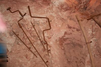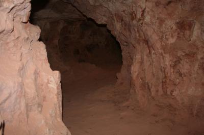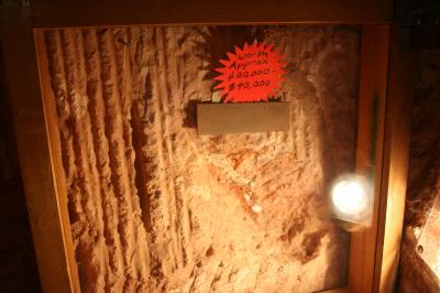 ビッグ・ウィンチのある丘の下に、初期の鉱山(オールド・タイマーズ)と題した博物館がありました。ここは1916年当時のオリジナルなオパール鉱山だということです。ここで鉱山を採掘していた人は、何らかの理由でこの鉱山を放棄し、再び戻ってくることはなかったのだそうです。その結果、この鉱山へ降りる縦穴は自然と埋まってしまい、その存在さえも忘れられていたそうです。1968年にこの岩山に地下住居を造って住んでいた人が、その住居を奥に拡張するため、掘り進んだところ、偶然この古い鉱山を発見したということです。
