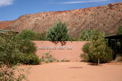 デザート・パークは、アリス・スプリングスの市街地に近いところにありました。中は3つのゾーン:川沿いの地域/デザート・リバーズ(Desert Rivers)、砂の多い地域/サンド・カントリー(Sand Country)、樹木のある地域/ウッド・ランド(Wood Land)に分かれていて、全部合わせると、120種類以上の動物と400種類以上の植物を見ることが出来るとのことでした。