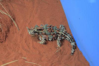 観光としては、特にサンド・カントリーの一画にある「夜行性動物の家(Nocturnal House)」がお勧めです。ここには夜行性の有袋類を含む哺乳動物、爬虫類、鳥および無脊椎動物が集められています。オーストラリアの動物たちはほとんどが夜行性ですから、ここは普段では見ることの希な動物たちが見られます。1番人気はとげとげのトカゲ「ソーニー・デビル(Thorny Devil)」でしょう。中央オーストラリアに生息する体長15cmほどのトカゲです。これで15年は生きるのだそうですから驚きです。また、オーストラリア版ツチノコといった「セントラリア青舌トカゲ(Centralian blue-tongued skink)」もいます。寸胴な体長は20cmを超えるでしょうか。その他、すばしこく動き回るので写真に撮りにくいのですが、耳の大きいビルビー(Bilby)、ワラビーをギュウッと小さくした感じのマラ(Mala)などももちろんいます。
