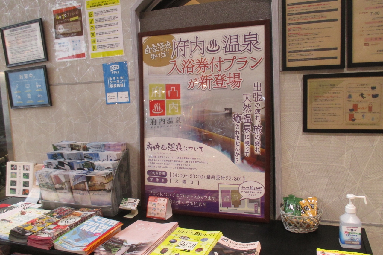 ホテルエリアワン大分は府内三丁目にありましたが、隣に一般の入浴施設の府内温泉があるのが良かったです。翌朝になってから知りましたが、宿泊とセットになったプランもありました。(今はあるか不明です)それなりに年数が経っている感じですが、掃除はきちんと出来ていて、気持ちよく過ごせました。フロントの対応もテキパキとしていました。なお、ホテル専用の駐車場(屋外)がありましたが、ちょっと離れていて、宿泊した時は空きがありませんでした。ホテルの隣の府内温泉があるビルは府内トレスパーキングという駐車場でした。1泊で100円高いだけでした。屋内ですから最初からこちらの利用を予定した方が良いと思いました。