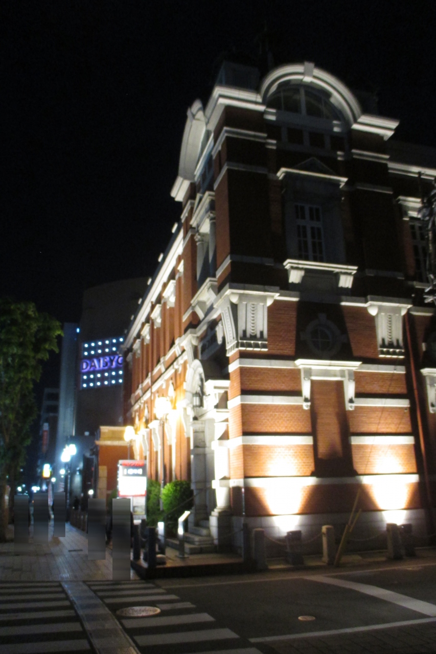大分銀行の前身となる旧二十三銀行本店として、1913年(大正2年)に建てられたのが、この赤レンガ館だそうです。設計はあちらこちらにその実績を残している辰野金吾さんだそうですね。昼間はデザインの美しい重厚なレンガ造りでしたが、夜にライトアップされると、また、別の美しい建物が姿を現しました。