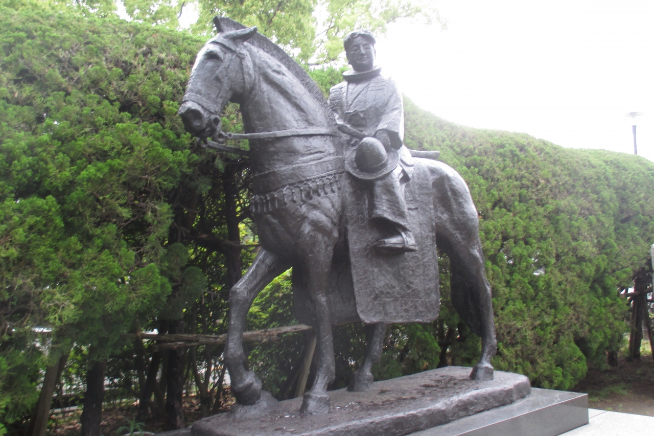 府内城の大手門前の角地に、フランシスコ・ザビエル像がありました。1969年(昭和44年)に建立されたもので、当時、大分市長だった上田保さんの一文が添えられていました。制作者は日本を代表する彫刻家である佐藤忠良さんとのことです。1549年(天文18年)に鹿児島にやってきたザビエルは鹿児島、平戸、京都、山口で布教し、大分には大友宗麟の招きで、1551年(天文20年)に訪れています。宗麟は山口の布教活動に大いなる興味を持っていたそうで、そうとう熱心に招聘をしたそうです。ザビエルとしては予定外のところで来日の成果が上げられたのではないでしょうか。この像は大分での布教の様子をイメージしたものだそうです。
