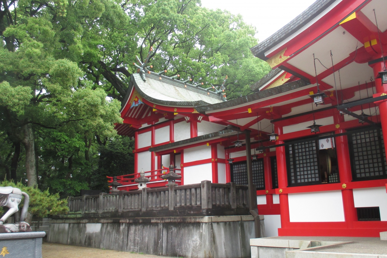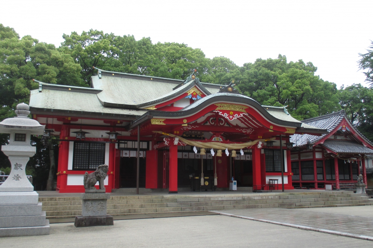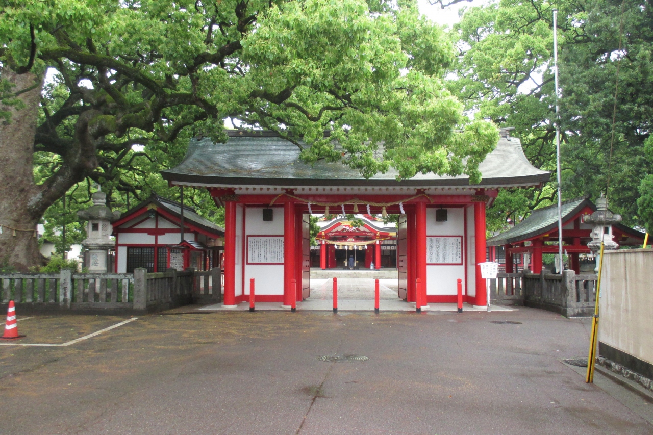 春日神社は大分市街の北部にありました。一ノ鳥居から二ノ鳥居を通って神門までの参道左(西側)には樹木がありますが、右(東側)は住宅街となってしまっているのが、神社の参道としては寂しい感じがしました。創建は古く、平安時代の860年(貞観2年)に国司だった藤原世数(よかず)が、氏神である奈良の春日大社の四所大神(春日神)をお迎えしたとのことです。歴史上2回の社殿焼失に遭っていて、1回目は1584年(天正12年)で薩摩・島津軍の侵攻によるものです。そして、2回目は1945年(昭和20年)で、アメリカ軍の空襲だったとのことです。(別府には空襲はなかったそうですが、大分は軍需施設があったのですね)戦後は仮殿の期間が長く、現在の社殿は1967年(昭和42年)に再建されたとのことです。