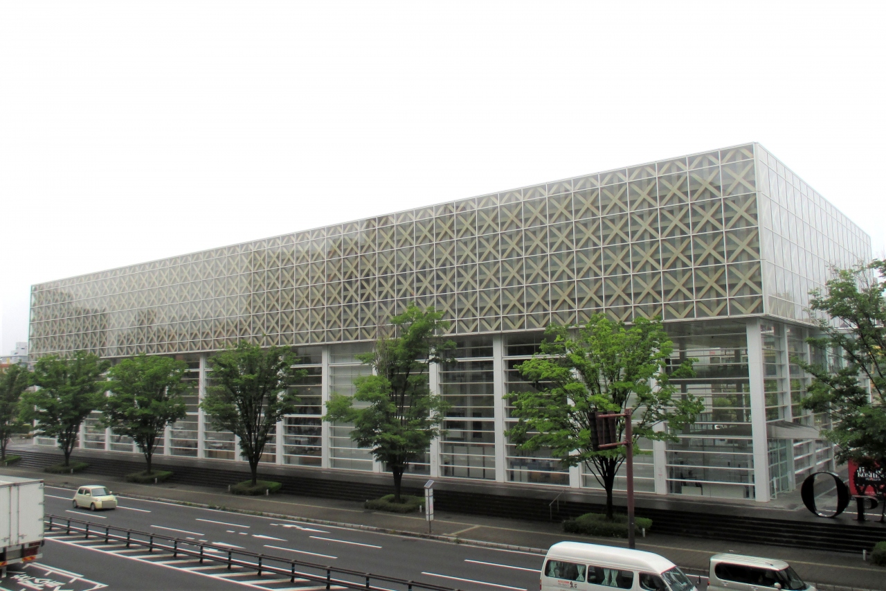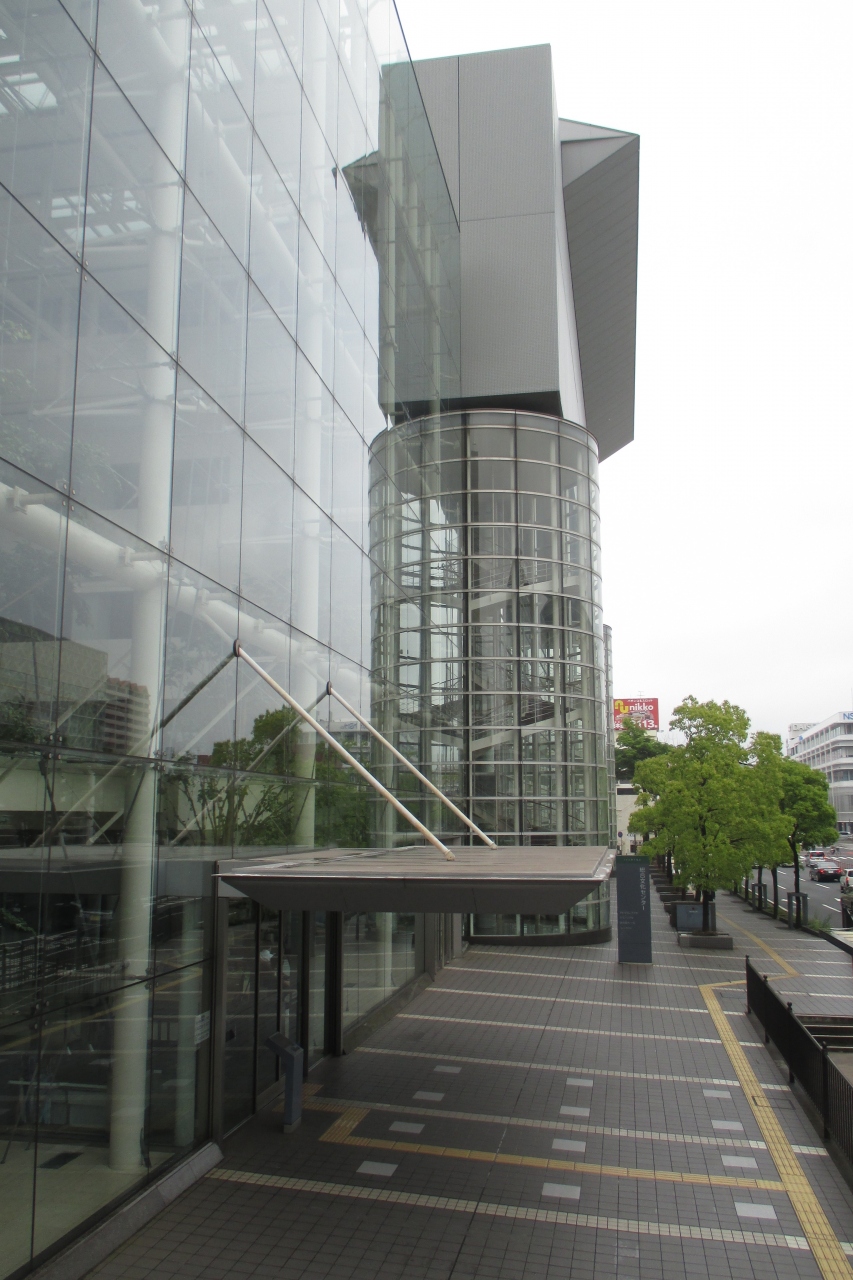 大分県立美術館は、国道10号線から国道197号線(昭和通り)に曲がってまもなくのところにありました。設計は坂茂さんとのことです。建物が大きいので全景が写るところを探していたら、空中連絡通路を渡りきってしまいました。前面の多くを占めている硝子は可動式なんですね。開いたところを見てみたいところです。中は空間が多く、最近の美術館だなぁと思いました。訪れた時はコシノジュンコ展でした。過去最大規模の展覧会と銘打っていました。ファッションデザインとは総合芸術なのだと改めて教えられました。