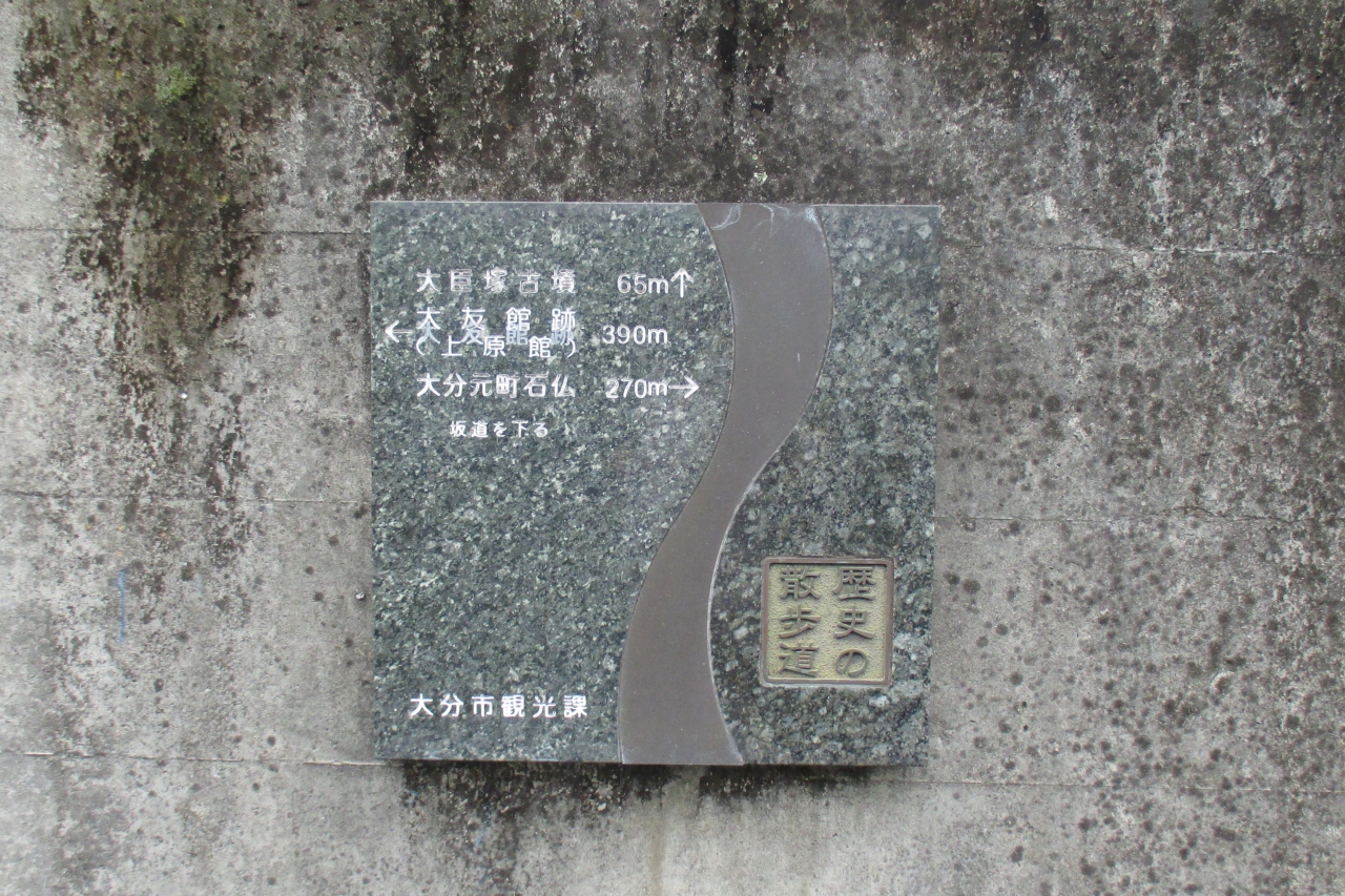 駐車場は大分市が設置した「元町石仏駐車場」を利用するのが良いと思います。駐車場には元町石仏の参拝者以外は駐車してはダメと掲示されていますが、同じ大分市が設置した歴史の散歩道には元町石仏もこの大臣塚古墳も一緒に案内されていますからね。