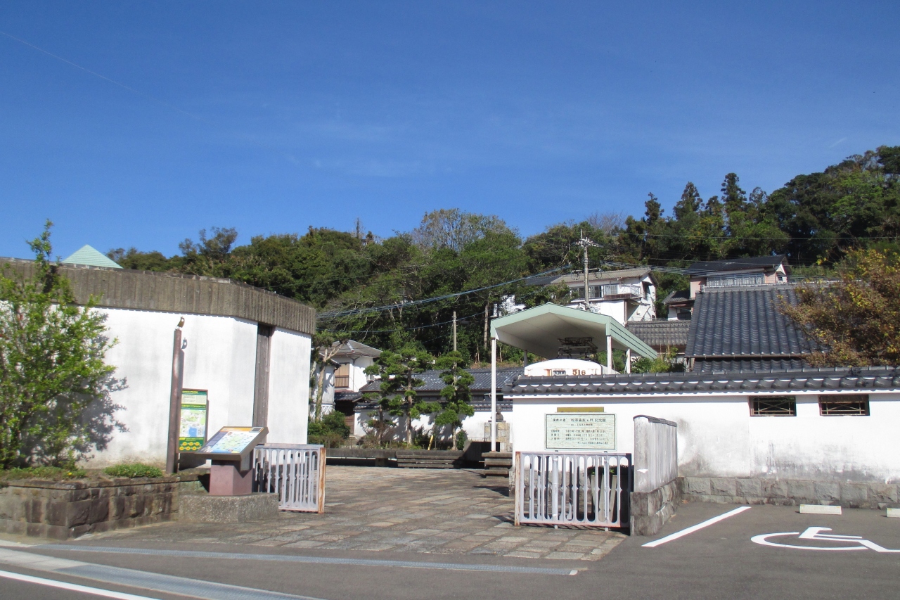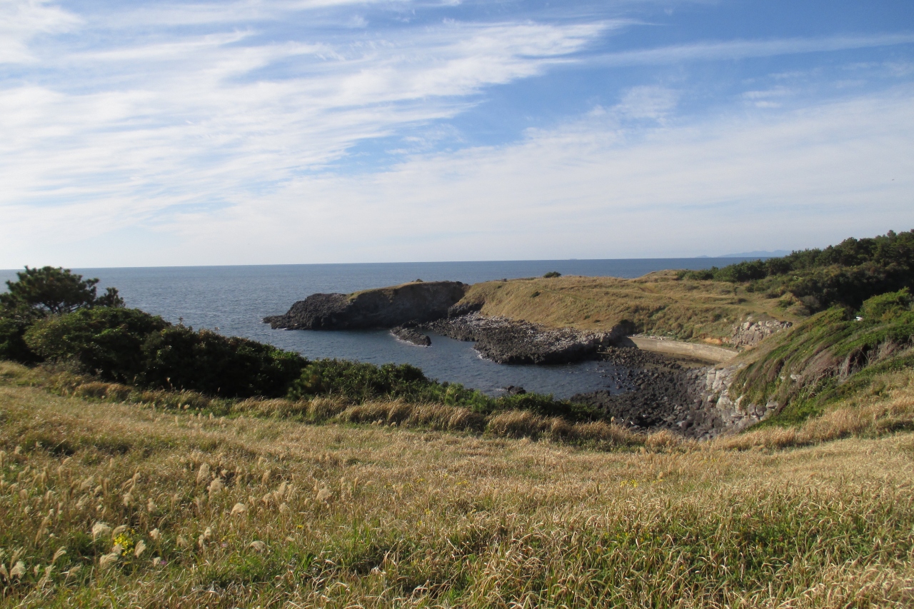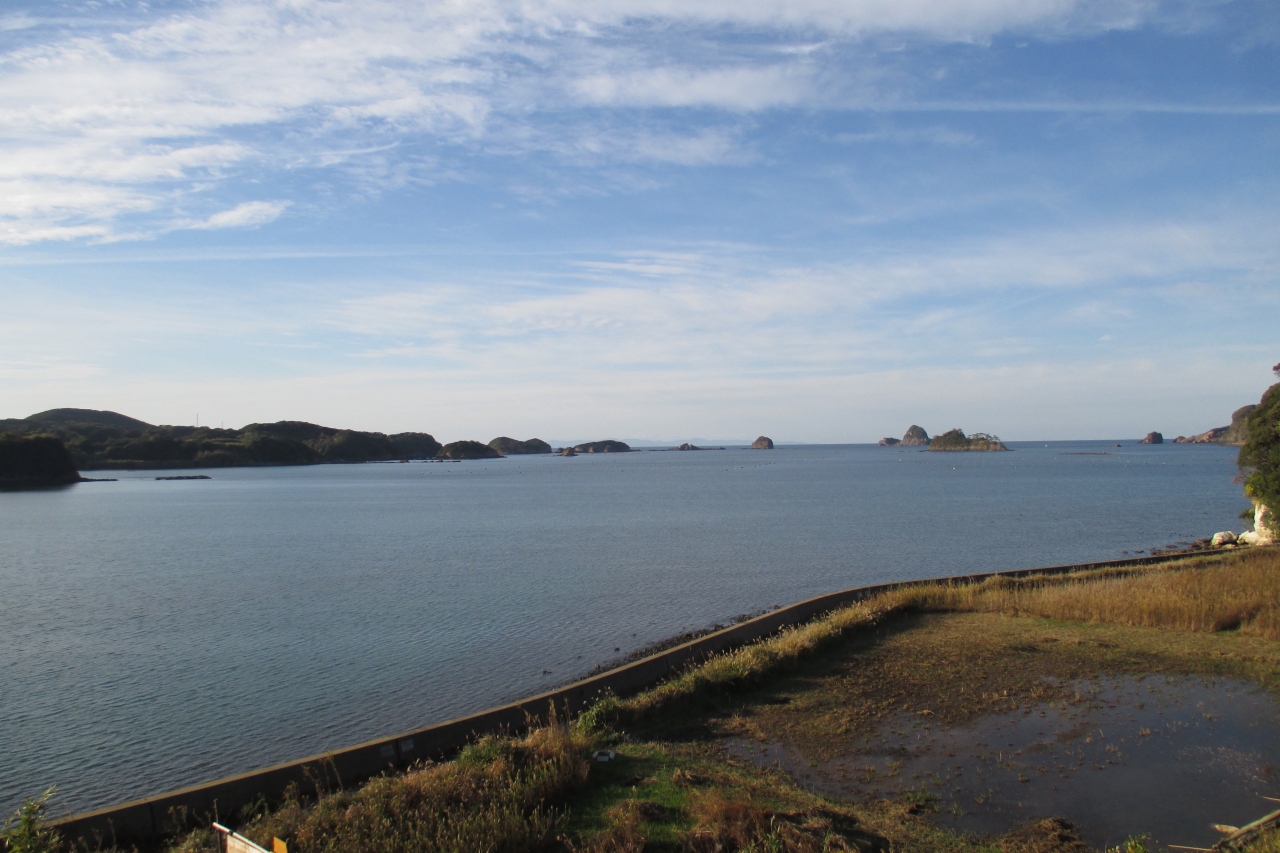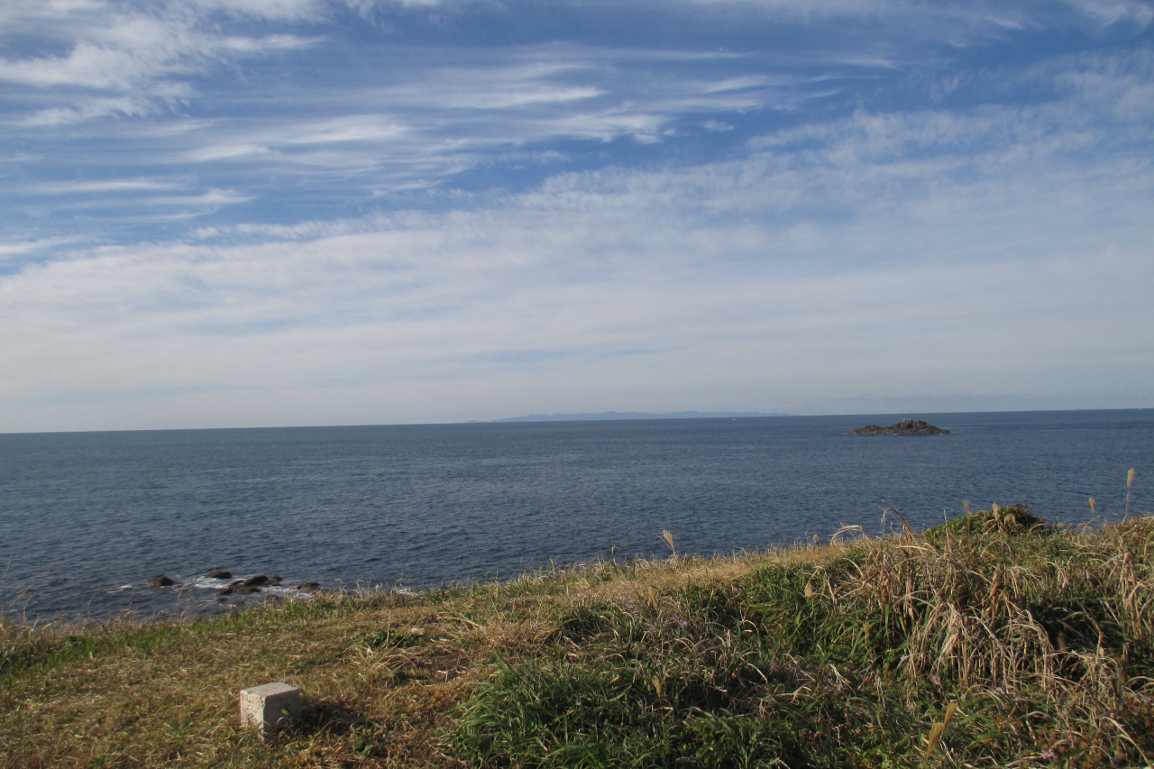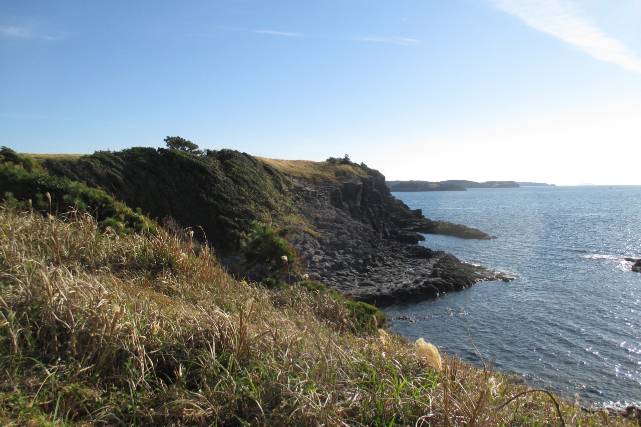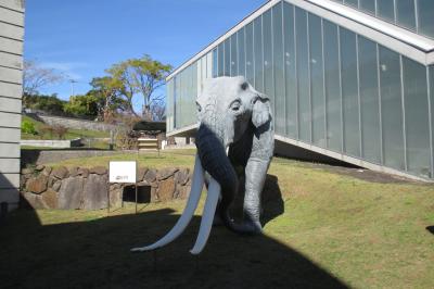 郷ノ浦の、以前、彫刻家の小金丸幾久記念館の庭だったところにステゴドン象が復元されて置かれていました。長い牙がマンモスの仲間を感じさせました。その化石が1971年(昭和46年)に湯ノ本温泉の西方・六郎瀬鼻で発見されたと書かれた産出案内板が、六郎瀬鼻近くの県道59号線に立っていました。化石は400万年くらい前のものと推定されています。ステゴドン象は東アジアなどに棲息していたもので、日本各地でも化石が見つかっています。日本列島はまだ大陸と繋がっていたのですね。