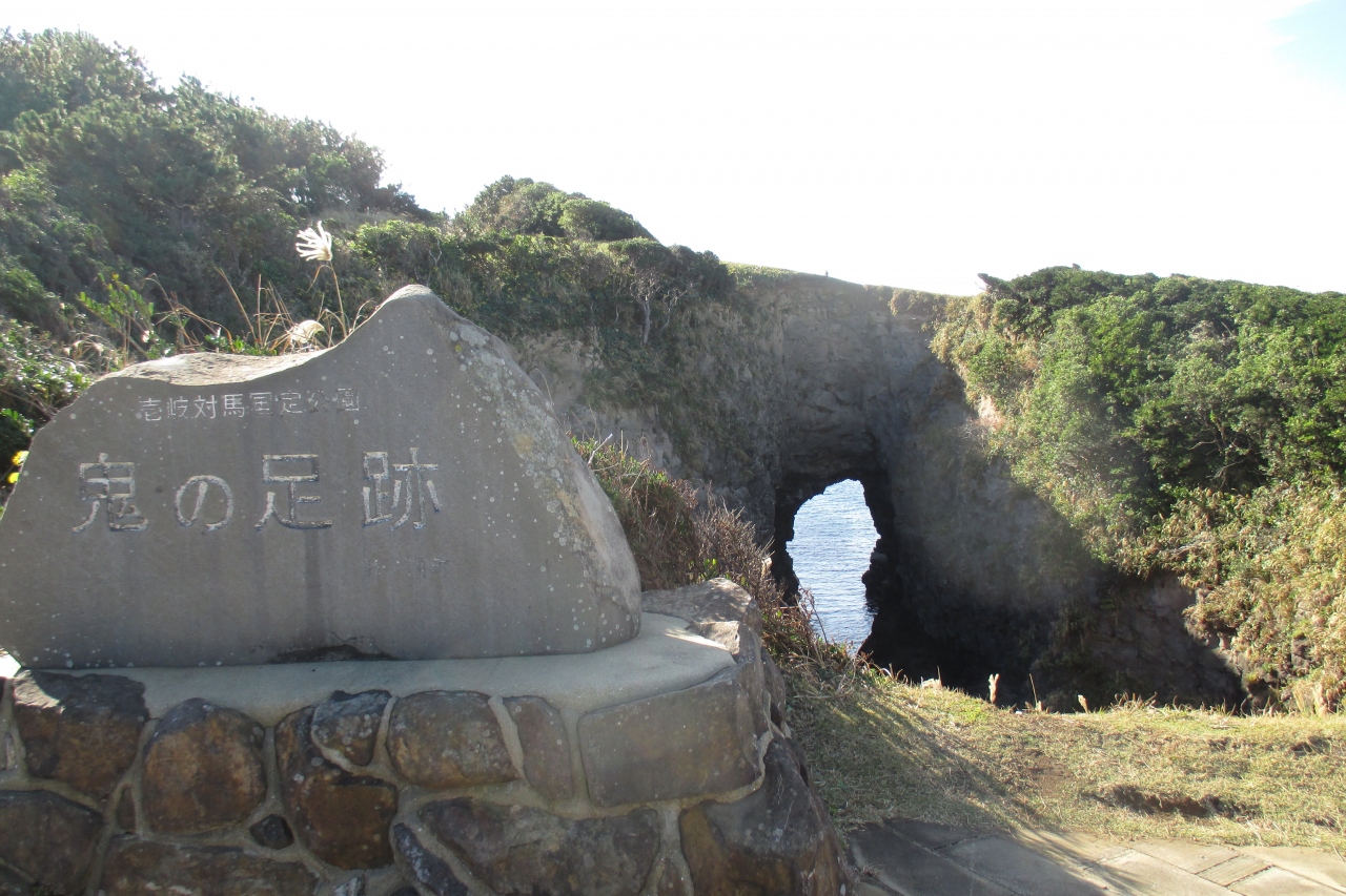 これは、大鬼のデイが鯨を3頭すくい捕るために踏ん張った時にできた足跡なのだそうです。ここは左足で、右足の跡は12km北の勝本町辰ノ島の蛇ヶ谷だそうです。鯨も大きかったのでしょうが、デイは大鬼といっても、想像を絶する大鬼だったのでしょうね。話は大きい方が面白いです。- 旅行時期