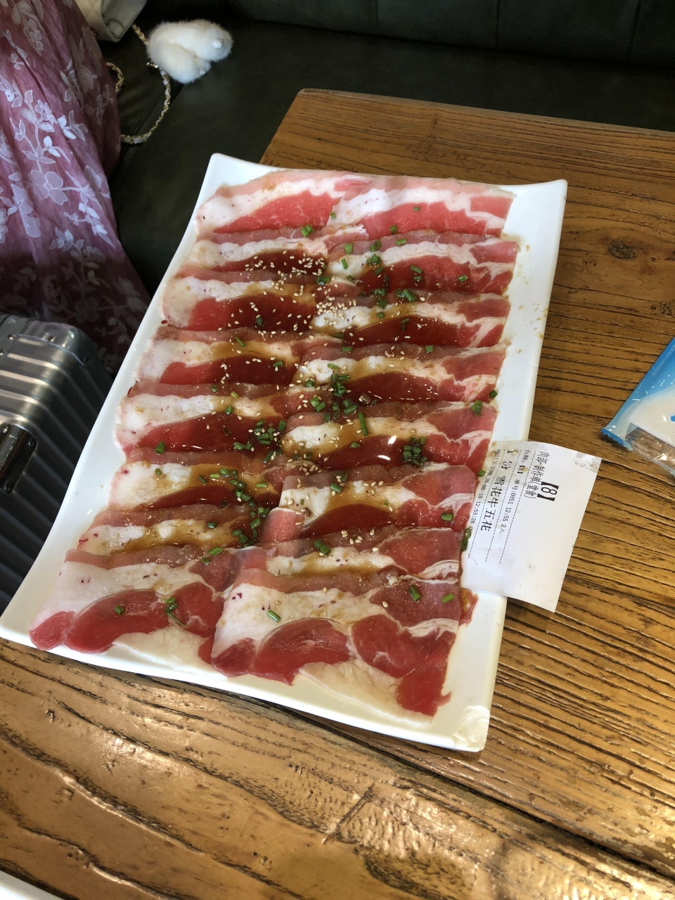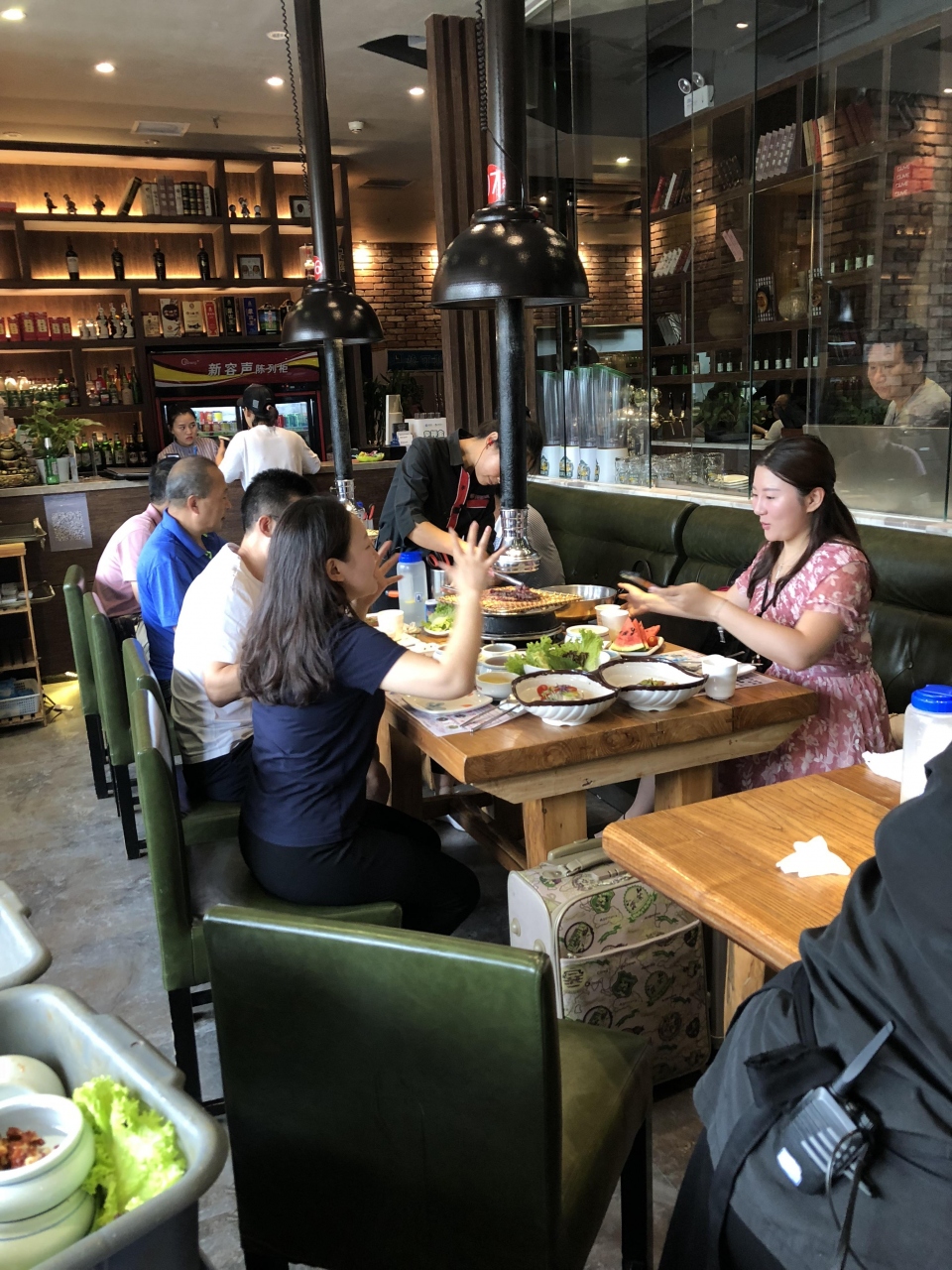 8月11日(土)北京到着後の最初の食事で利用しました。この店を利用したのは5~6回目です。場所は亮馬橋駅から徒歩10分程度、順源街と新源街が交わる三叉路にあります。向かい側には帰国時に日本へのお土産を調達する京客隆スーパーがあります。中国でしゃぶしゃぶといえば何といっても海底撈が有名ですが、三元橋や亮馬橋付近でしゃぶしゃぶを探しているなら、大得刷肉がお勧めです。海底撈みたいなサービス(待ち時間のフルーツや飲み物、ネイルサービス)はありませんが、ここのごまダレは絶品です。スープは炭火で熱した単なるお湯ですが、ごまダレで食べるお肉は海底撈を大きく上回る満足感です。二人で食事して277元でした。