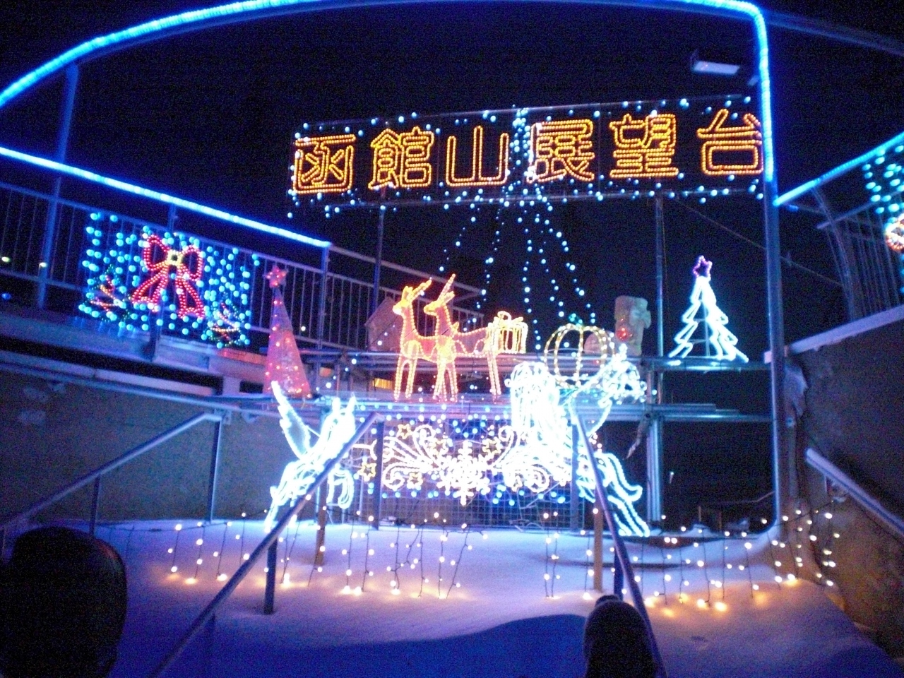冬の函館山はものすごく寒い。特に足先が痛いです。出かける前に、足に貼るカイロなどの備えをしてから登ることをお薦めします。ロープウェイで山頂へ着いたら右側では有料の写真撮影の方がいますが、そのテラスにも、実は自由に立ち入ることができて、自分たちで写真撮影ができるんじゃないか?って思いながら、皆は反対側のテラスへ行ってしまいます。本当のところどうなのか???行ってみれば、案外すんなり行けてベストポジション撮影出来るんじゃないかな・・・