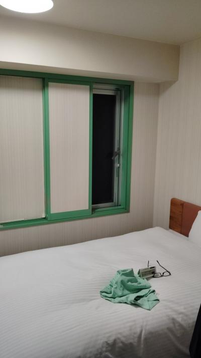 ベッドはセミダブル位の幅があり広い。また、2階建てではないので、酔っ払ってても大丈夫。