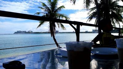店の一番奥のカウンター席からはタモン湾が見えます。- 旅行時期