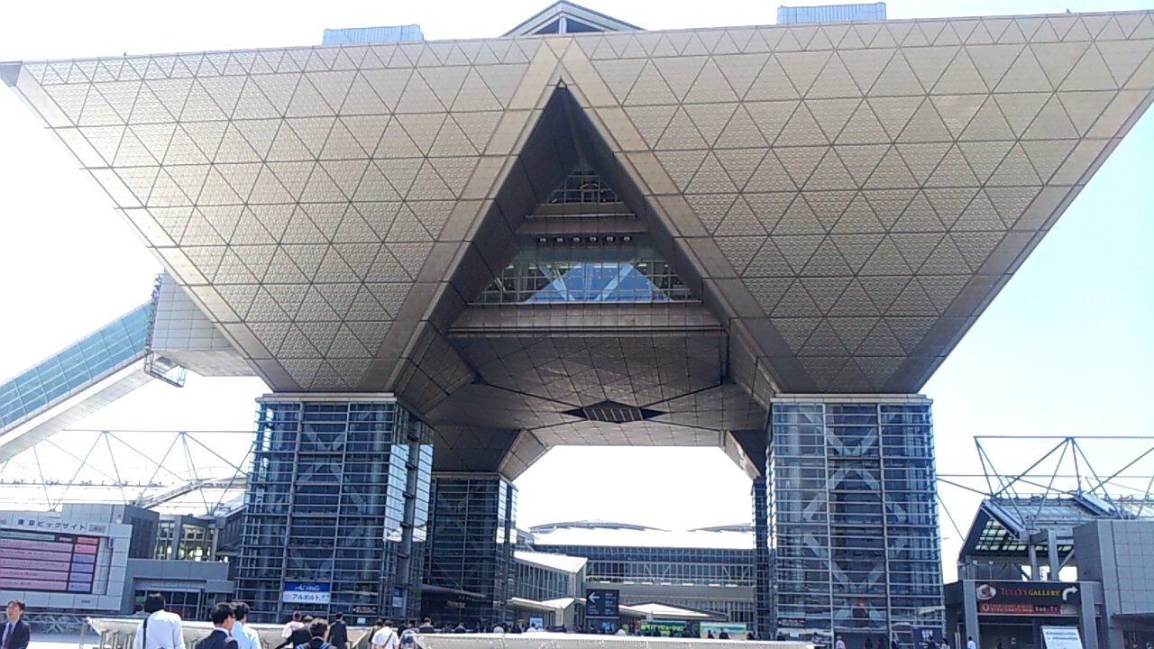 展示会で行きました。りんかい線の国際展示場から歩くと10分はきるとおもいます。