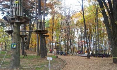 ルオムの森の中にあり、木と木の間に張ったワイヤーの上を渡ったりできる施設です。