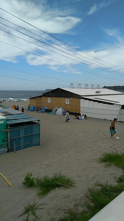 お盆のど真ん中におもいたっていってみた。駅から徒歩5分程度で海の家に到着。
