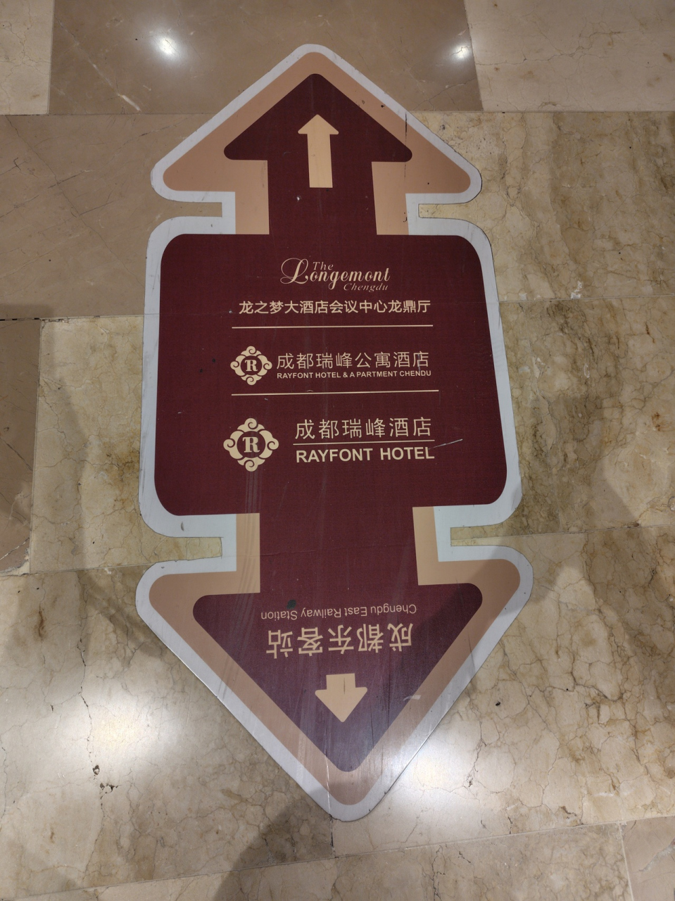 成都東駅から徒歩10分以内で辿り着けます。駅からも建物が見えるため迷いません。成都東駅の地下通路では、同系列のホテルの案内ルートも掲示されています。あまりにも、駅から近いため駅の構内アナウンスが聞こえるので、耳栓を持参されると尚良いと思います。部屋は清潔で日本のちょっと良いビジネスホテルを想像して下さい。バスタブはありませんが、水回りが清潔なのが良いです。朝食は20元で中華式朝食ブッフェがあります。連泊してもメニューが変わるのも良い点です。中国の四川省の世界遺産九寨溝、黄龍、楽山、峨眉山行きの高速鉄道はいずれも成都東駅から乗車出来るので、重い荷物をホテルに預けて、手軽に観光することも可能です。