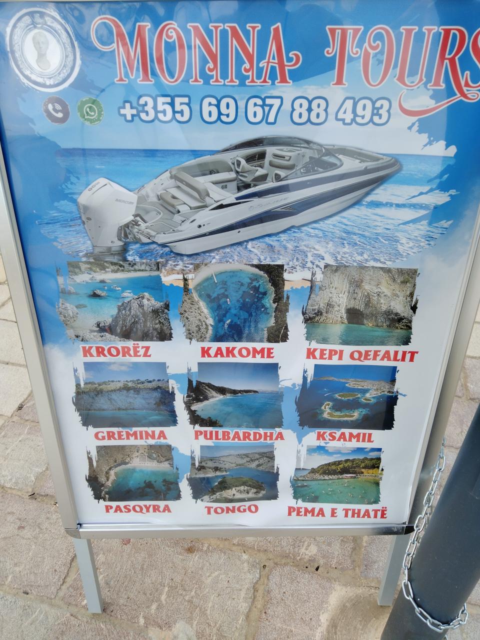 アルバニアの世界遺産、ベラト、ジロカストラ、ブトリントへ日帰り観光出来る立地にあります。対岸のコルフ島、こちらも世界遺産へは、フェリーで約1時間(パスポートが必要)で訪れる事が出来ます。物価も他のヨーロッパに比べて安いので長期滞在するにもお勧めのビーチです。