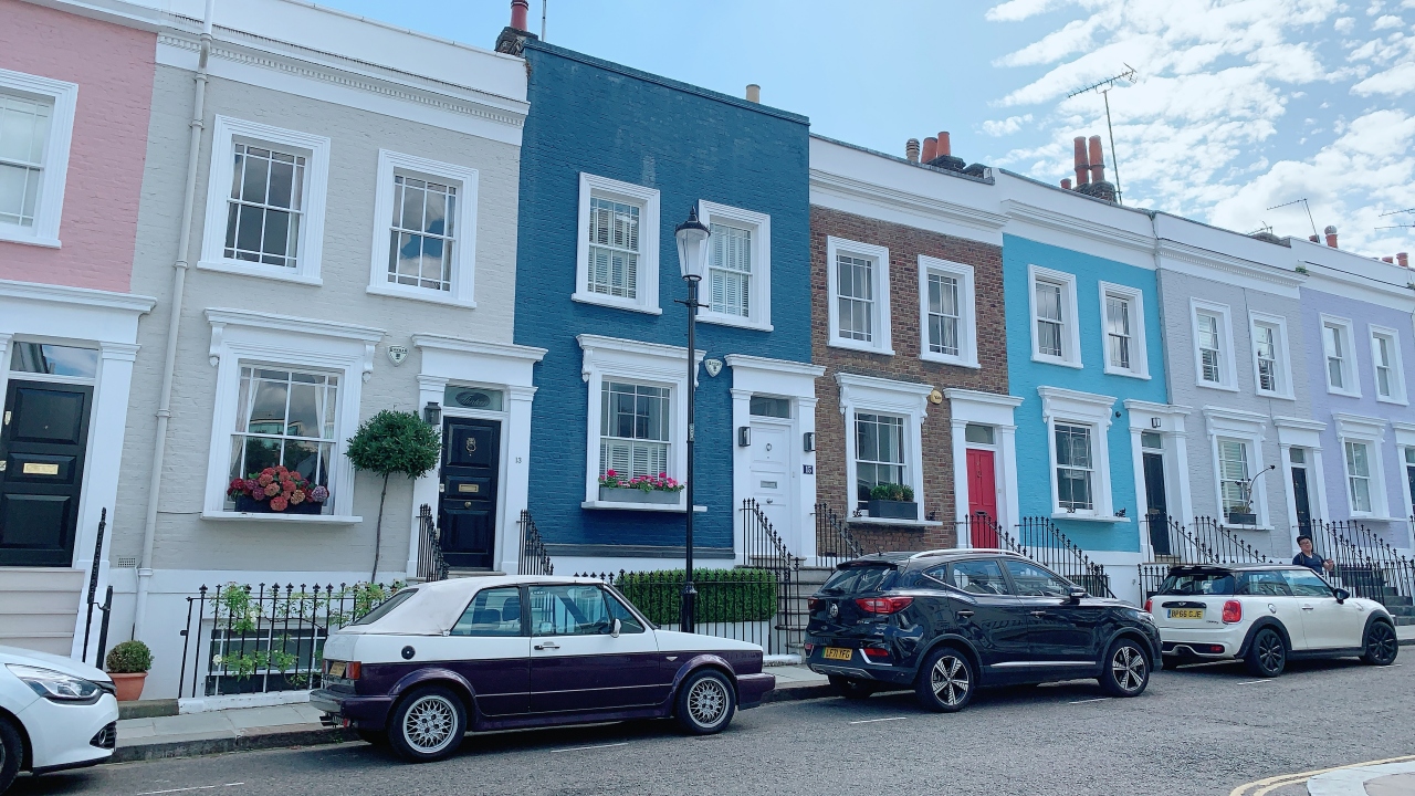 空港から到着してすぐに向かったのはノッティングヒルでした。メトロ駅からすぐに街中へ移動しました。かわいい街並みとステキなお店と、もう最高。翌日からフェスティバルで荒れるということで防護柵がそこらじゅうで仕込まれていました。