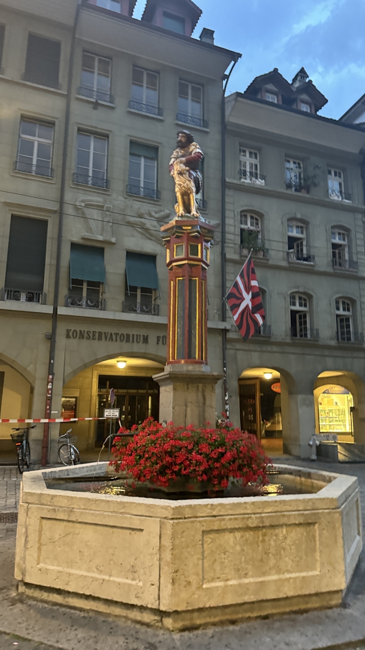 脱獄塔前にある噴水です。ここは珍しく女性です。と思ったら、私財を投じてベルンに病院を建てた女性だそうです。噴水にはベルンの歴史や功績者が刻まれているとは。アンナさんのことはこーやってベルンの歴史に刻まれるのですね。