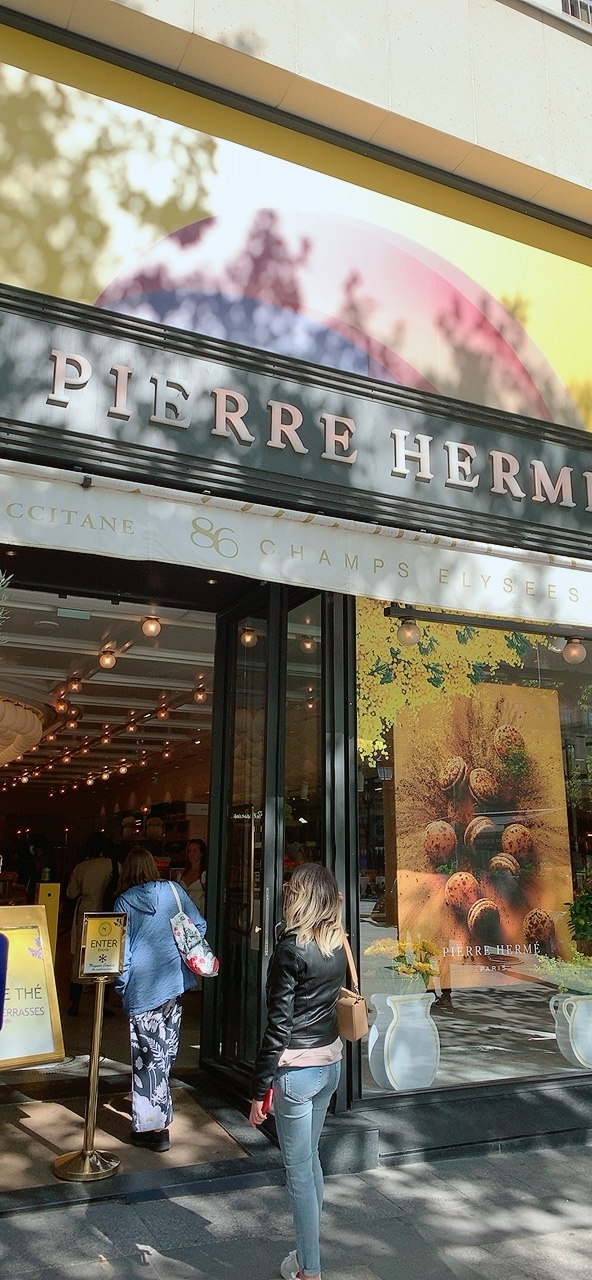 シャンゼリゼにある広い店舗です。しかもロクシタンと同じ店舗になっていてとても素敵です。カフェスペースも広いですし、ゆったり過ごせます。やっぱりマカロンを食べたいので並んで購入しました。美味しいですね、最高です。