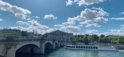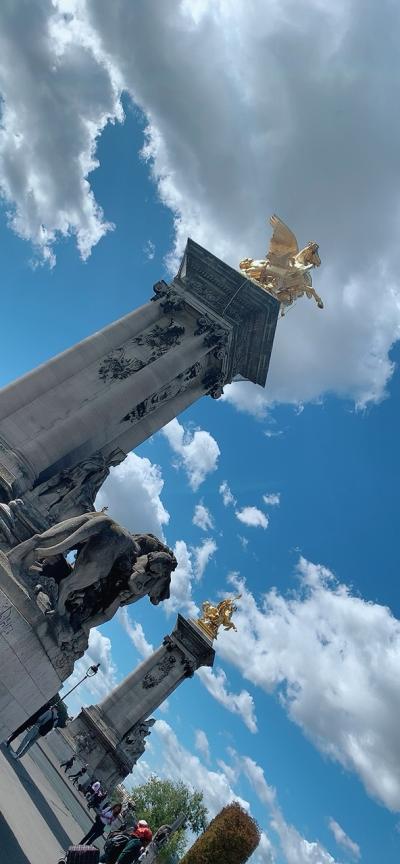 ここからのエッフェル塔が美しいです。セーヌ川も素敵ですし、リバーサイドをお散歩するのも楽しいです。そしてこちらの橋はかなりゴージャスです。黄金の塔がかなりかっこいいですね。ここまで歩けて、ここからの景色を見れて嬉しいです。