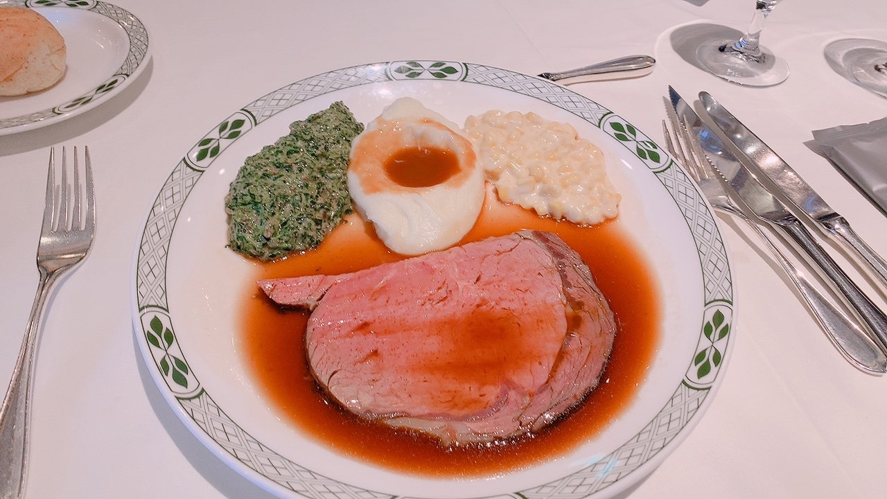 こちらの前菜のブッフェがとにかく大好きです。お野菜を食べすぎてメインのローストビーフに行きつかないというのが問題ですね。ローストビーフももちろん美味しいですね。しかも西洋ワサビにもピッタリです。デザートも充実