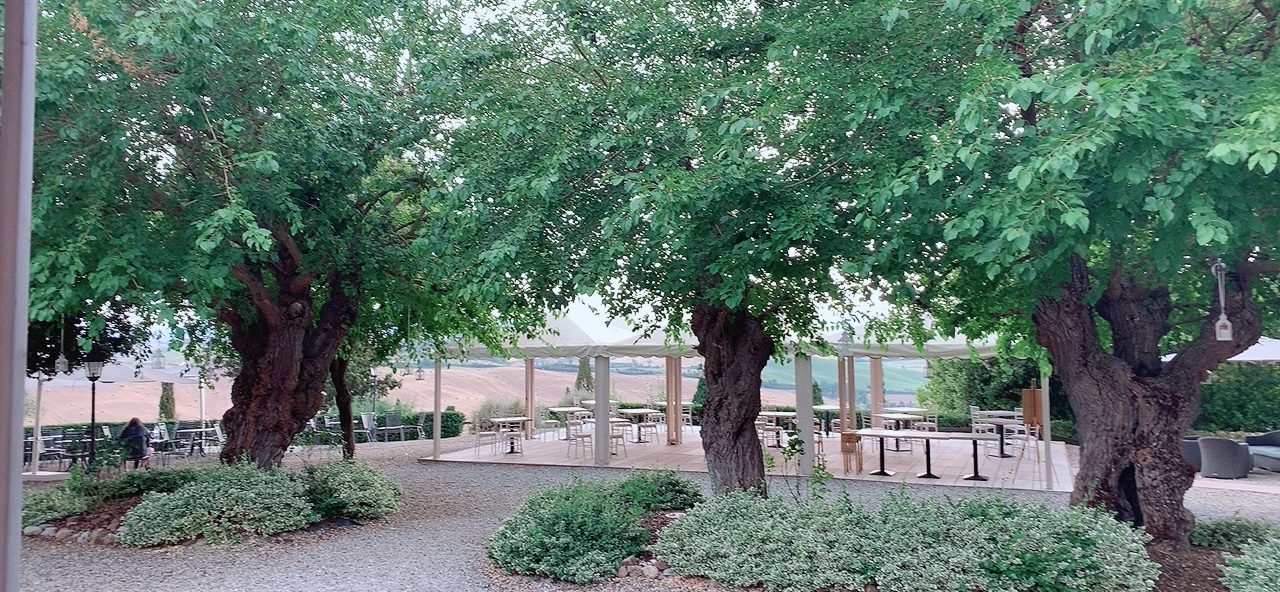 ギフトでもらったこちらのホテルに宿泊。トスカーナの丘の上のホテルです。ここはレストランもテラスで美景を望みながら頂けて素敵です。プールもあってマッサージもあります。お部屋は普通ですが、大自然を満喫できるホテルです