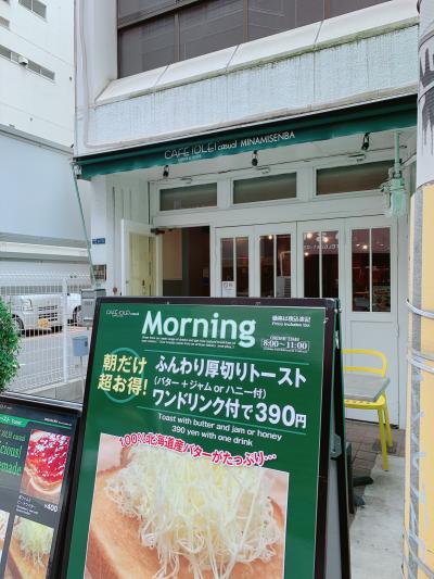 心斎橋に行く道すがらにあるカフェです。モーニングがあるという看板をみたのでいってみました。朝ごはんいいですね。普通のトーストではありますが外で食べると楽しいものですね。美味しくモーニングをいただいてパワーチャージ