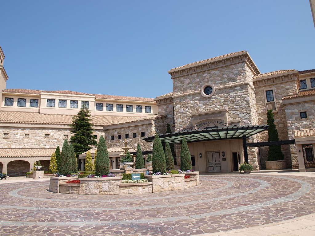 まるでディズニーランドの一角のようなリゾート感×高級感が融合した立派な本館へ。