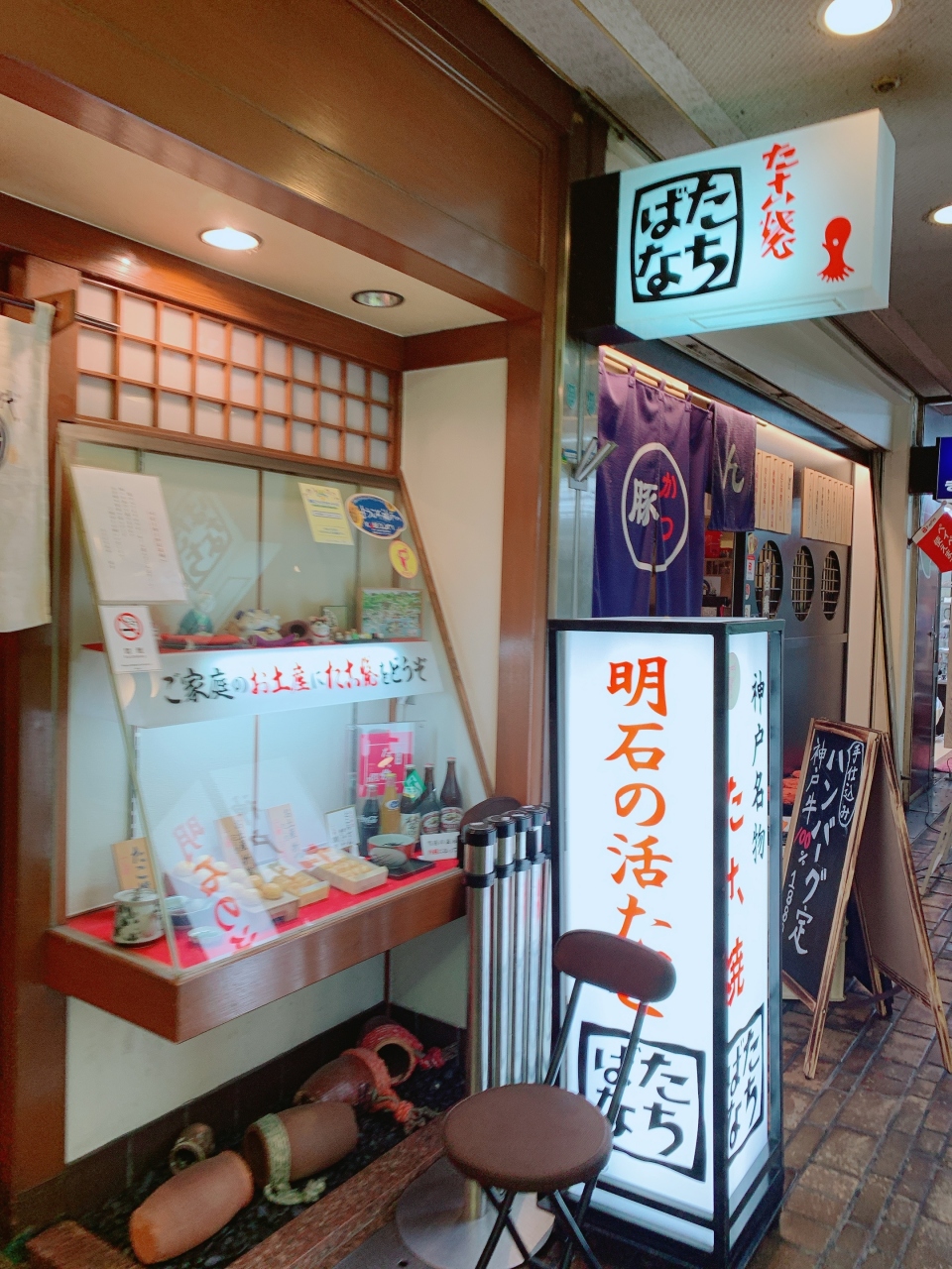 明石焼きの名店たちばなです。三宮にも店舗がありますがサンプラザにもあります。地下にある飲食店が並ぶなかのひとつです。たこ焼きもあっておいしいのですが、だしのきいた明石焼きもめちゃ旨なんです。さすが明石からのたこです。