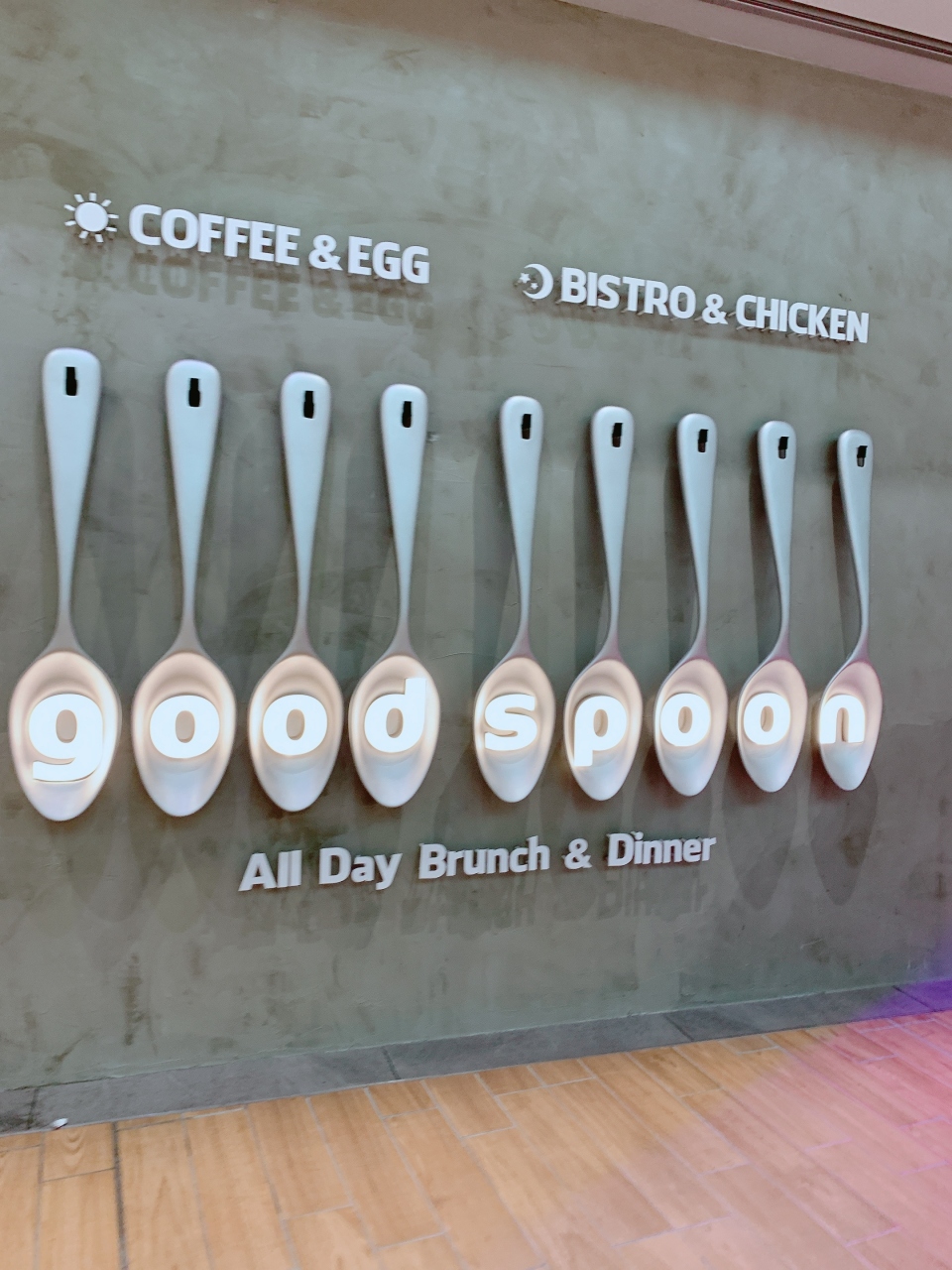 西北のガーデンズに行くまでの場所にあるグッドスプーンです。かなりおしゃれな雰囲気です。ダイニングなのでランチでも夜でも使えるのもいいですよね。メニューもいろいろあって楽しいですし、見た目もいまっぽいです。