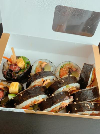 出張先やどこでもデパ地下で物色するのは楽しいものです。ここのキンパがおいしいです。もっと雑多な感じでもいいけど、こちらはかなり上品な感じです。細く切ってくれているのでひと口が食べやすいのもうれしいです。