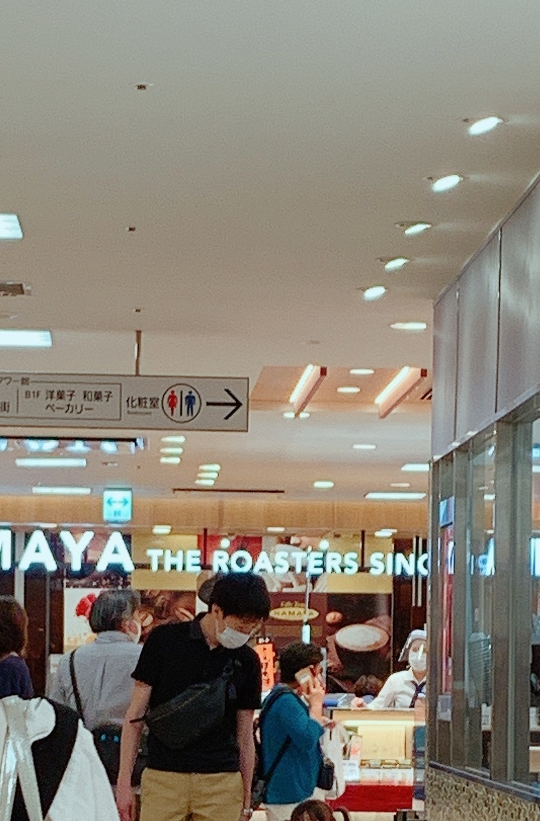 南海なんばと島屋の前にある無印ビルの地下にあるムジカフェです。地下鉄にも直結しているので雨にぬれずにいけます。ここは広いのにいつだってたくさん人がいて満席率も高いです。けど今は席をまびいて営業されていました。