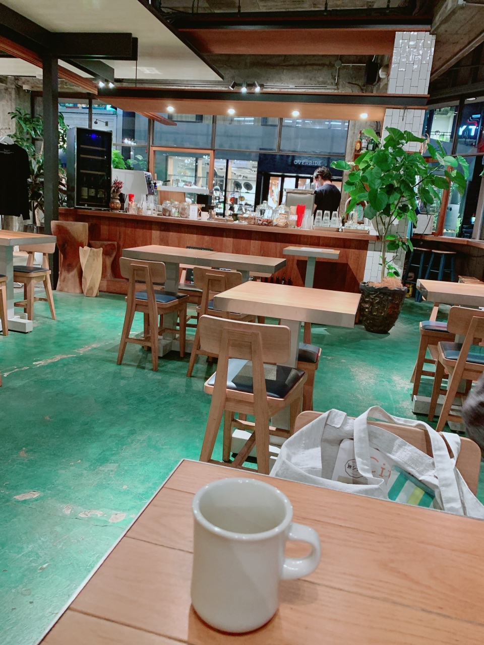 堀江にあるビオトープです。ここだけ軍をぬいておしゃれなんです。このコーナーはコーヒーやパンが食べられるカフェになっています。居心地はよくないですが、悪くもない。店頭のグリーンを見れてどこにいるかわからなくなります。