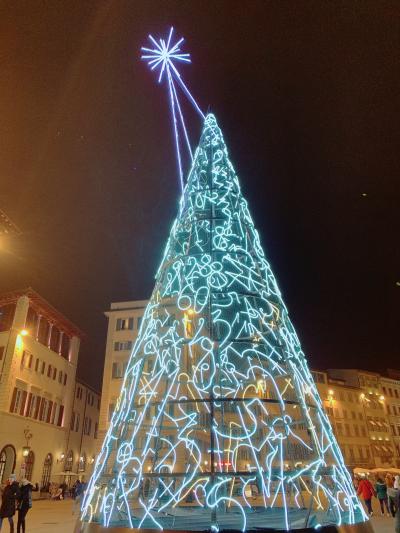はじめてのフィレンツェです。ホテルがこの広場の近くだったので毎日何度も通りました。クリスマスシーズンだったのでアートなツリーが印象的でした。そのツリーのまわりで演奏するストリートミュージシャンもとても上手でうっとり。